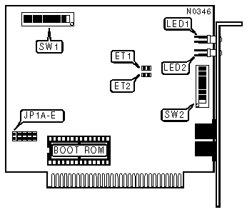 Note: If the card is on either end of a linear bus network segment, the onboard terminator may be used instead