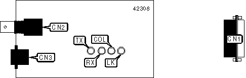 RJ-45 Unshielded twisted pair RG-58 A/U 50ohm coaxial AUI transceiver via DB-15 port |