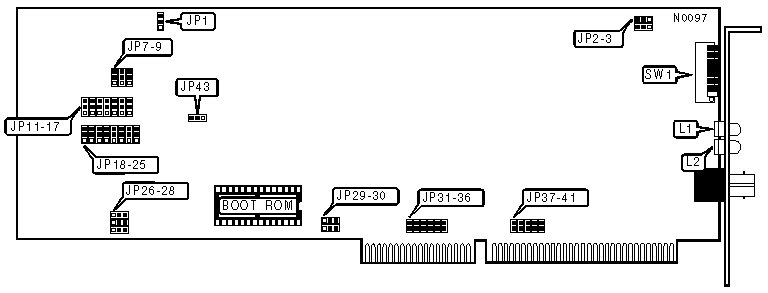 Note:When JP9 has pins 1 & 2 closed, the buffer size is 128KB, rather than 8KB. Use this setting when experiencing diffifulty with fast AT-class machines. |