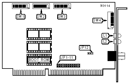 Note: Place the digit found in this table in front of the address given on the previous table to get the complete RIM buffer address. A setting other than zero in this table will place the buffer into extended memory at the aforementioned address. For example, a setting of 2 will place the buffer into the 2nd megabyte of extended memory, a setting of C will place the buffer into the 12th megabyte of extended memory. Starting from the base address. Make sure that the next 16 to 128KB of memory (see above notes) are not used. Important: The software drivers supplied with this card do not support extended memory. |