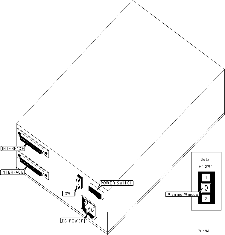 Note: SCSI ID is selected by activating SW1 until the desired ID number is displayed in the viewing window. In addition, ID’s 8 & 9 are factory configured - do not alter. |