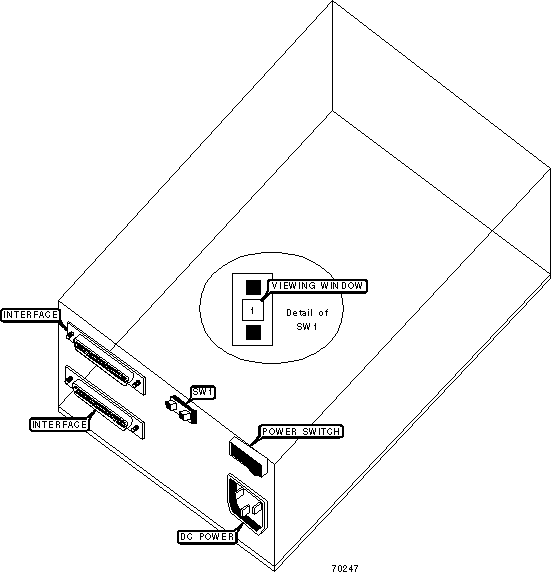 Note : SCSI ID is selected by activating SW1 until the desired number is displayed in the viewing window.