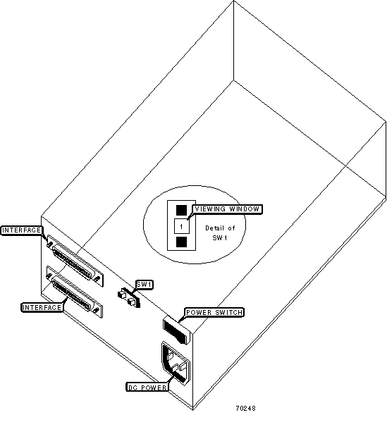 Note : SCSI ID is selected by activating SW1 until the desired number is displayed in the viewing window.