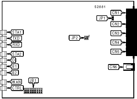 Note:Jumper block JB1 is a one-piece shunt. All pins 1 & 2 or all pins 2 & 3 are closed. CN1 can be either an X.21 or an RS-232 interface on Model 76923. On all other models it is either a V.35 interface or an RS-232 interface. | |||