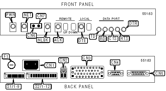 data port via V.35 connector, network interface via 15-pin connector,