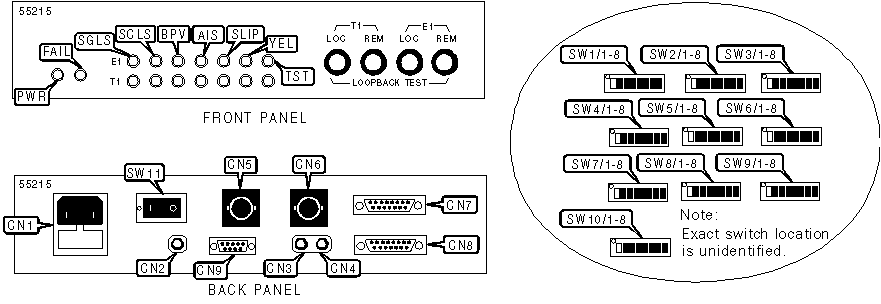 Note: Top row of LEDs indicate E1 network activity. Bottom row indicates T1 network activity