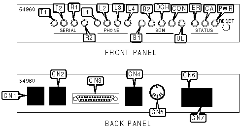 ISDN line in, ISDN line out, 25-pin serial port, RJ-45 serial port, power, RJ-11 line out (2) |