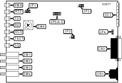 Note:Modem can be made to perform self-test by holding down SW2 and SW4. The DCD, TEST, and SQ LEDs should go on, and the RD LED should go off.