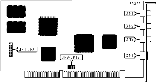 A total of 256 base address settings are available. The switches are a binary representation of the hexadecimal memory addresses. JP8 is the Most Significant Bit and JP1 is the Least Significant Bit. The switches have the following decimal values: JP8=512, JP7=256, JP6=128, JP5=64, JP4=32, JP3=16, JP2=8, JP1=4. Turn off the switches and add the values of the switches and convert to hexadecimal to obtain the correct memory address. (Off=1, On=0)