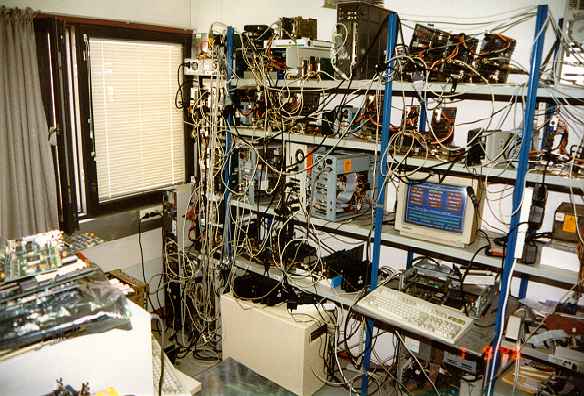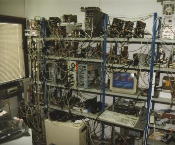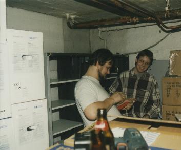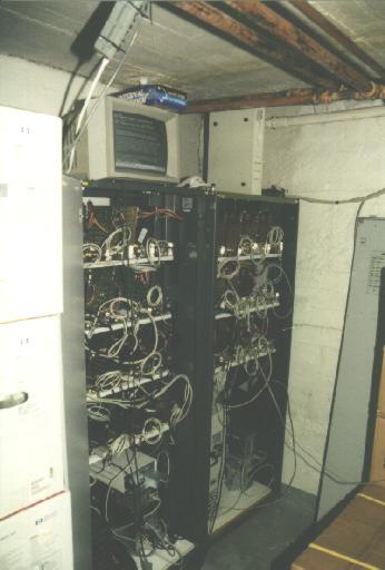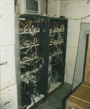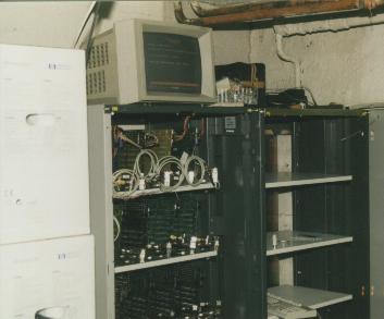 | bbs-6.jpg | 2013-02-24 09:29 | 16K | Konehuone, Kalevankatu 1997 - Ensimmäiset viisi nodea valmiina (ylähyllyllä). Serverit käynnissä ja käyttäjätietokannan pakkaus meneillään. Aamulla aloitettiin ja koko päivä asennusta takana. |