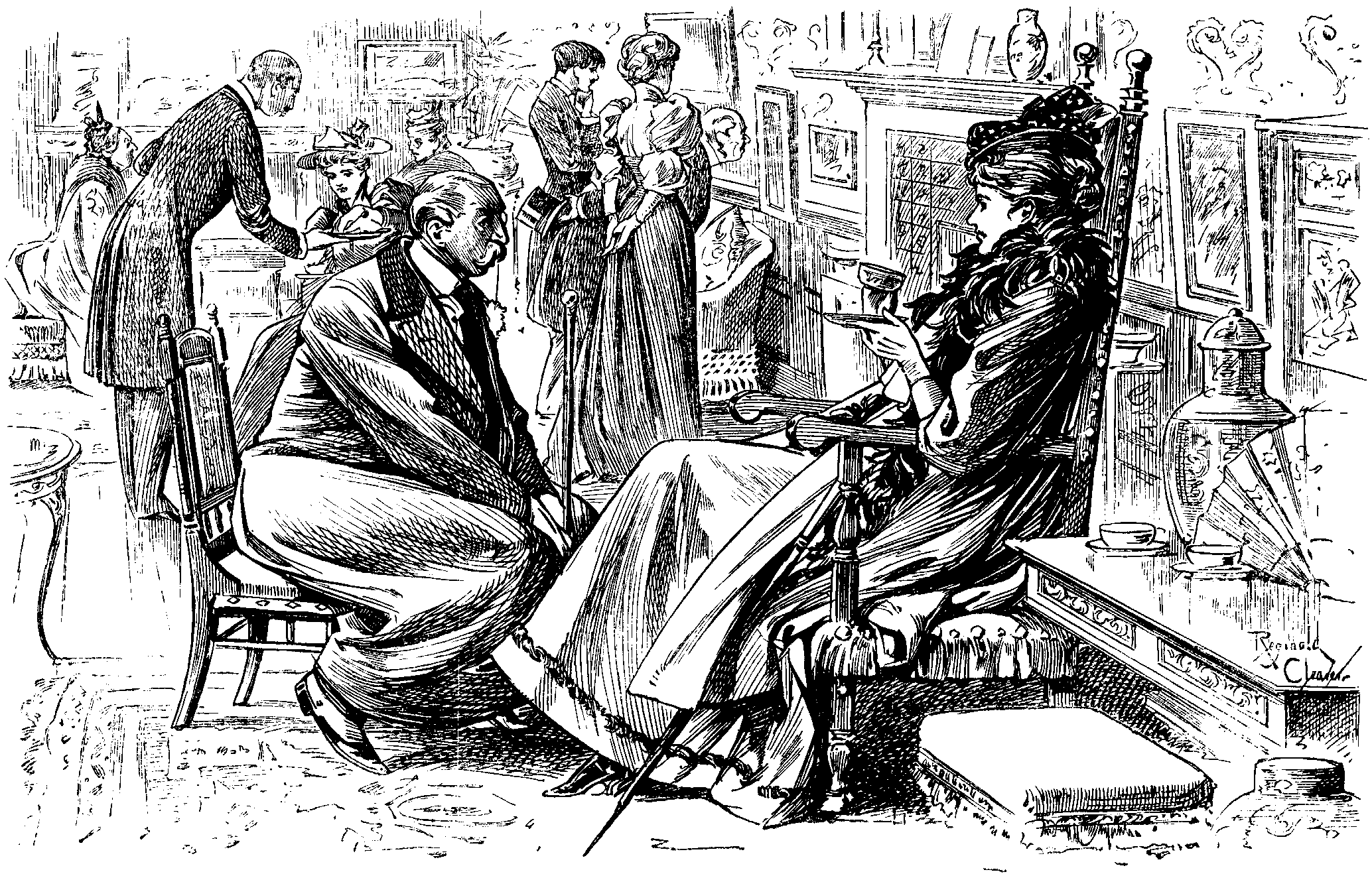 SCENE—Interior of a Drawing-room during a dance. Sprightly Damsel disengaged looking out for a partner. She addresses cheerful-looking Middle-aged Gentleman, who is standing near her.