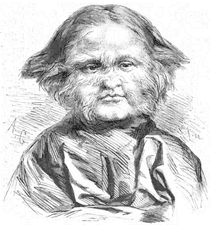 «N'ayant ni cheveux, ni barbe, ni moustaches, toute la face ainsi que le crâne et la partie postérieure du cou de ce curieux sujet disparaissent sous une abondance anormale de poils follets monstres qui; atteignent sur le front, le nez et les joues la longueur de la coiffure du chien griffon comme aspect et disposition des mèches, produisant au toucher la sensation qu'on éprouve en caressant un terre-neuve. Il est possible que cette invasion insolite ait amené l'atrophie du système pileux ordinaire, et il faudrait peut-être se garder d'aller chercher au delà d'une maladie de la peau pour en déterminer la cause. On sait depuis longtemps que les anomalies, voire même les déformations artificielles, surtout les altérations de la forme du crâne, nous fournissent des exemples de transmission par la génération, mais, outre que ces cas sont relativement peu nombreux, ils ne persistent pas, et l'état normal reprend ses droits sans que le moindre écart vienne de nouveau troubler son évolution.