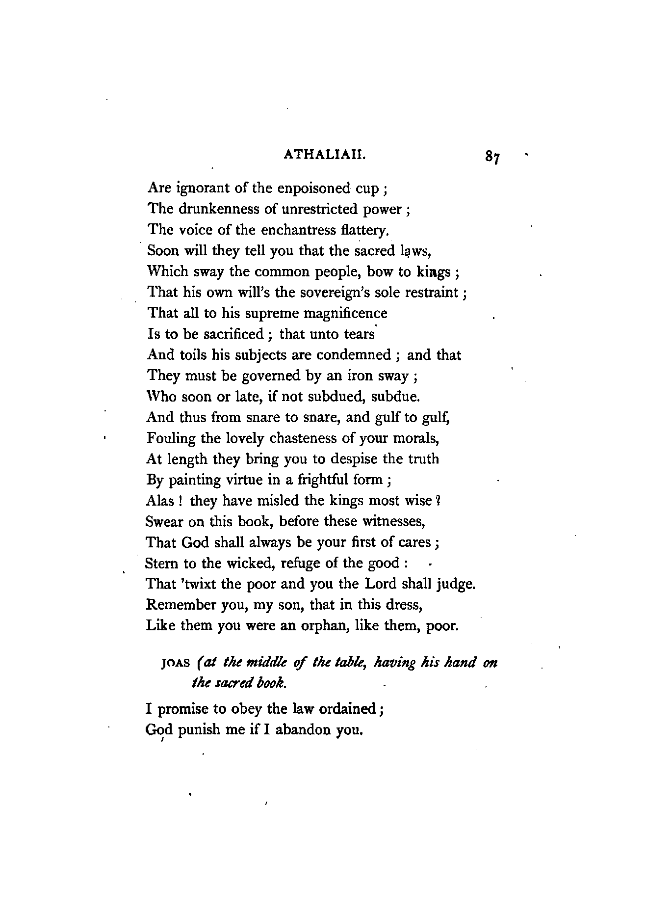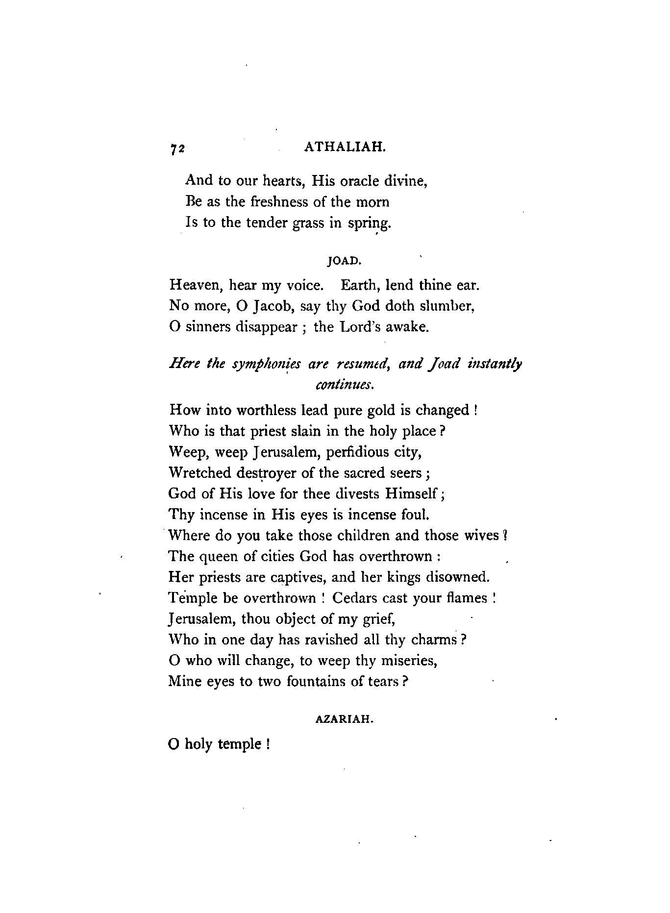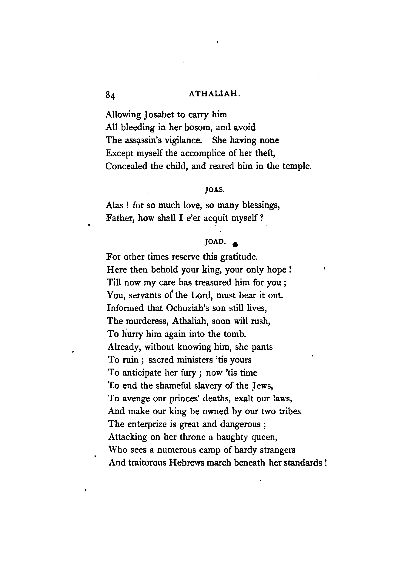 I have retained several of the French names, on account of their measure and euphony. Joas and Joad I have, I believe, invariably versified as one syllable, and Baal also, with one exception, which occurs in the first page; these words, to my judgment, being scarcely of greater quantity than thought, wrought, brought, &c.