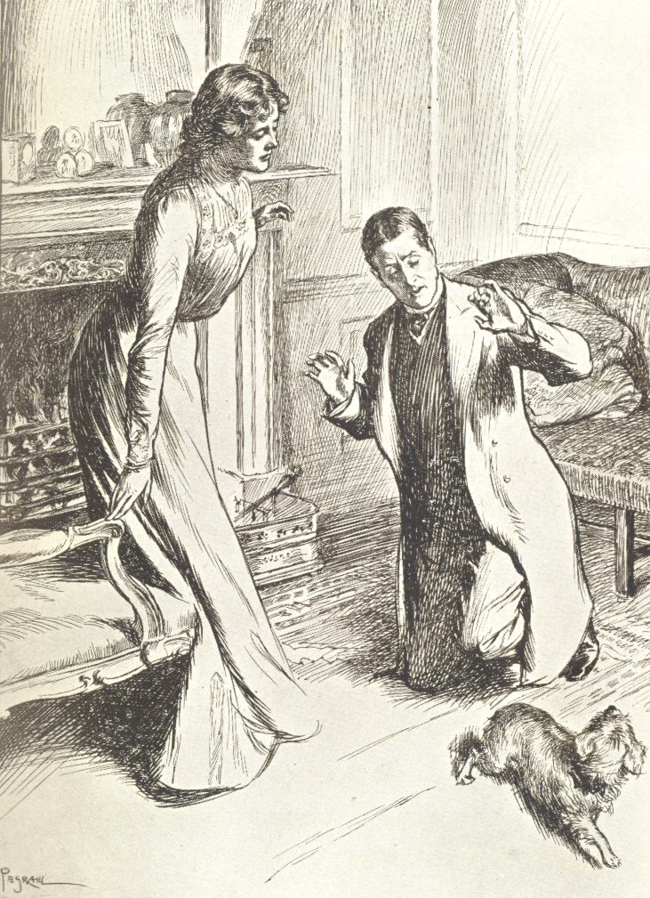 He would fling himself on his knees before her, never noticing the dog |