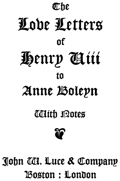 *** START OF THIS PROJECT GUTENBERG EBOOK LOVE LETTERS OF HENRY VIII ***