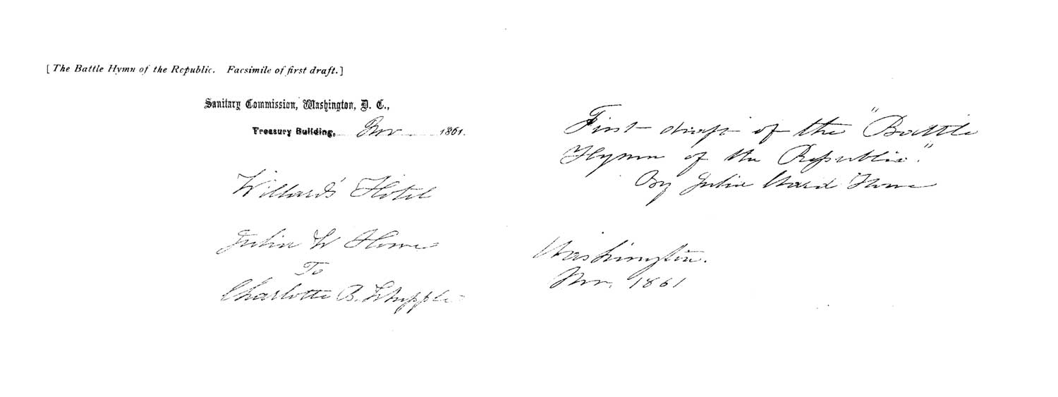 | Facsimile of the First Draft of the Battle Hymn of the Republic From the original MS. in the possession of Mrs. E. P. Whipple, Boston. | 276 |