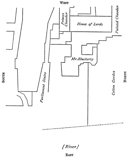 | March, before Lady Day.—The conspirators begin to work a third time, but finding that the ‘cellar’ is to let, hire it, and having moved the powder into it, disperse. | |