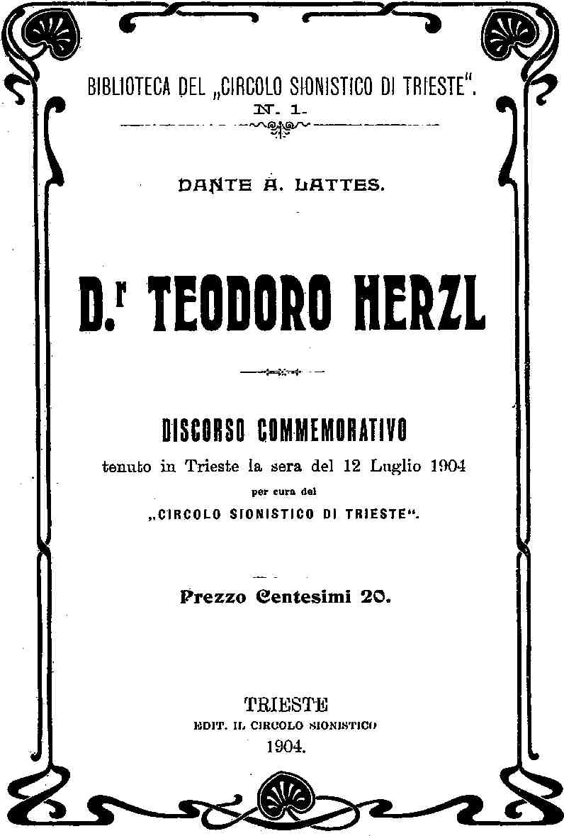 Io amo d'un amore smisurato tutti gli spiriti grandi nati dai lombi d'Israele ed alimentati dal sangue della nostra civiltà: ma mi pare che eran molti secoli che Israele non dava al mondo un rinnovatore di coscienze ed un agitatore di plebi com'è stato Teodoro Herzl.