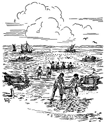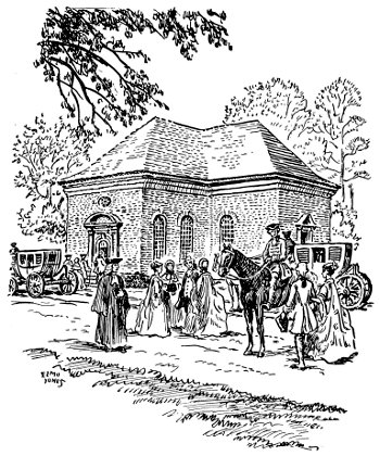 In the Northern Neck there are still so many reminders of these remarkable people that it is not hard to imagine them as they might have been in their habitat several centuries ago—John Mottrom sailing into the Coan in his brightly-colored shallop; the Mottrom children playing their medieval games in the shadow of the primeval woods; Ursula twirling the venison roast on its hempen string before the fire; Hanna Neale passing the witchcraft test; young Jack Lee dashing down the forest aisles on his spirited mount; George Mason pulling the arrows from the "poor people"; Moore Fauntleroy measuring off his thirty arm's lengths of rhoanoke for the waiting Accopatough; King Carter rumbling down his avenue in his coach and six; Mary Ball on her dapple gray; James Monroe and John Marshall walking down the Parson's Lane with school books and muskets; Nelly Madison singing to her new baby; young George Washington riding down to see "Miss Betsy" on a fruitless mission, and little Robert E. Lee saying good-bye to the cherubs in the nursery fireplace....[Pg 5]