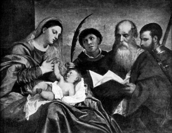 The same painting illustrates Titian’s magnificent mastery of composition. Perhaps the Pesaro Madonna alone of all his other works is worthy to be classed with it in this respect. It is impossible to conceive of anything [ix] better in composition than these two works. Not a line in either could be altered without detriment to the organic unity of the plan.