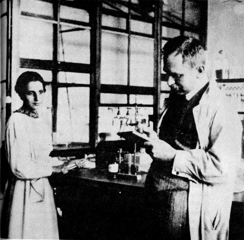 Lise Meitner and Otto Hahn in their laboratory in the 1930s.