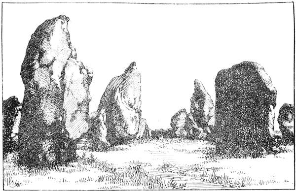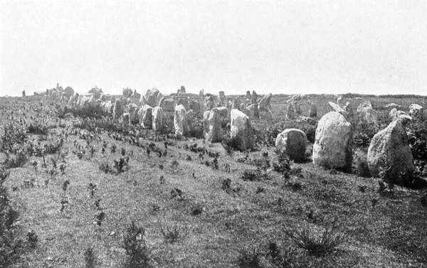 The back-bone of Upper Brittany is the chain of the Menez that runs from East to West, and then branches, forming on the North the Montagnes d'Arrée, and on the South, the Montagnes Noires. The system may be likened to a hay-fork or a pair of tongs, where the prongs of the fork form the above-named ranges. The whole rests on an elevated plateau that slopes to the sea North and West, and on the South dies down into the plain of the Vilaine and the Loire.