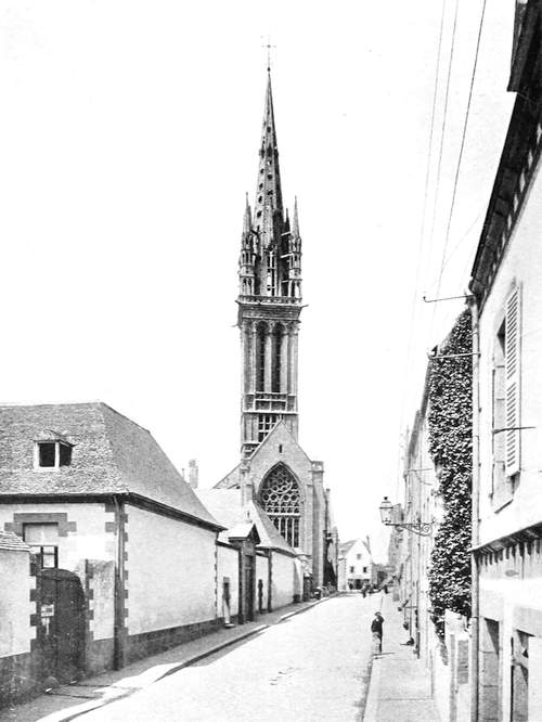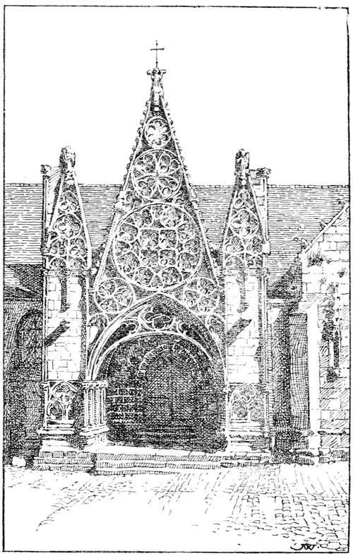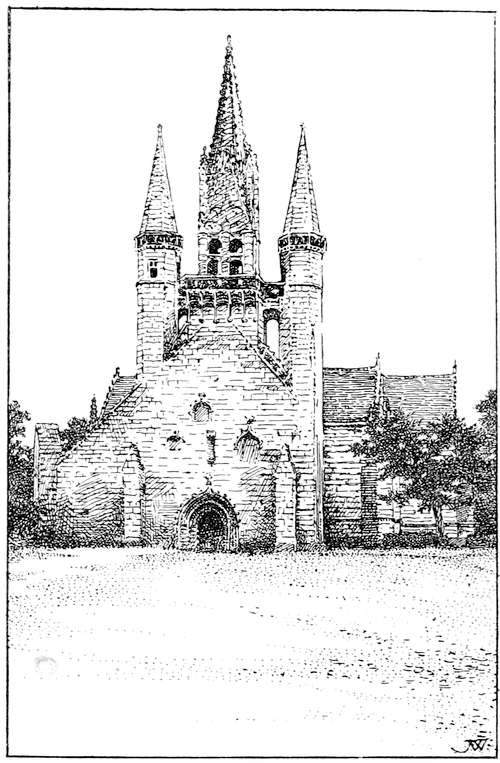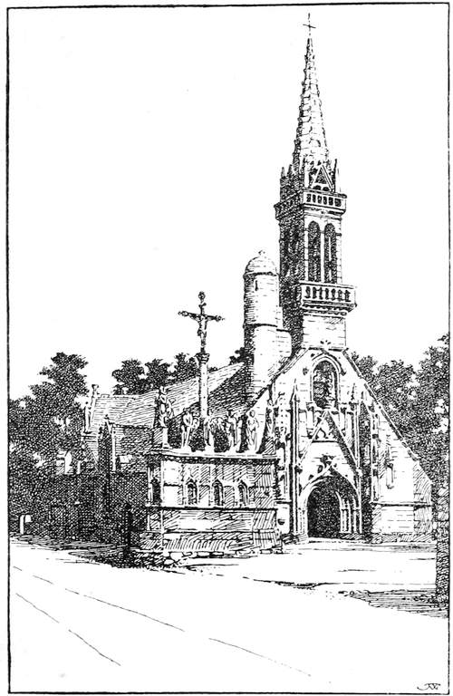 Brittany can hardly claim the attention of the tourist as a superlatively beautiful country. The way in which trees are clipped and tortured out of shape disfigures the sylvan landscape; and of mountain scenery there is none. The ranges of the Montaignes Noires and the Monts d'Arrez are insignificant. Yet the valleys are pretty, but never grand. The charm of Brittany is to be found in the people and in the churches. The former with their peculiar costumes, and their customs are full of interest, and the latter are of remarkable beauty and quaintness. The ordinary tourist will hardly see much of the costume unless he attends a pardon, the Patron of the Irish peasant; the patronal feast at some chapel frequented only on the day of the pardon. But the student of men and manners will find much to interest him at such a gathering. The churches are of extraordinary beauty, they are for the most part of granite, but of a fine-grained granite that lends itself to elaborate carving. And the kersanten stone is employed, a dark volcanicvi product that is undercut and preserves its sharpness through centuries, and is employed for carving of lace-like delicacy. The coast scenery is fine, but not of the finest description, and varies very greatly from the granite cliffs of Finistère to the sandy dunes of the Morbihan. The towns are not comparable to those of Normandy for the number and richness of their mediæval domestic buildings, but are set in far more charming surroundings. The cathedrals are, for the most part small, Quimper and S. Pol de Léon and Tréguier have the finest, but these are of a French type, whereas the village churches possess a stamp peculiar to Brittany, where spared. Unhappily a passion has possessed the people of late to pull down their ancient churches and build new Houses of God in very questionable taste. In the diocese of Vannes the modern architecture is execrable, but the architects of Quimper are of a vastly higher type. They follow the old lines, and imitate what is good, whereas in the Côtes du Nord and in Morbihan, the modern work is insufferably vulgar and bad. The whole country teems with prehistoric antiquities, but these will only interest those who have made such monuments a special study; nevertheless Carnac and Locmariaquer and Gavr' Inis cannot fail tovii impress the ordinary traveller with a sense of astonishment at the majesty of the rude architecture of a lost and mysterious people of whom almost nothing is known, and whose one religious idea seems to have been, the cult of the dead.