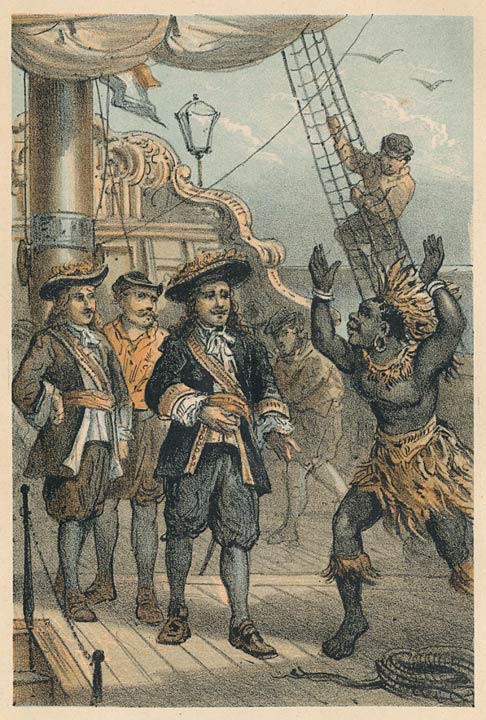 Ofschoon de knaap op mijne vraag een ander antwoord gaf dan ik verwacht had, kon ik toch aan zijne oogen zien, dat hier volstrekt geene vleierij of zoo iets in het spel was, en dat hij inderdaad wenschte, dat ik een verhaal over De Ruyter schrijven zou.