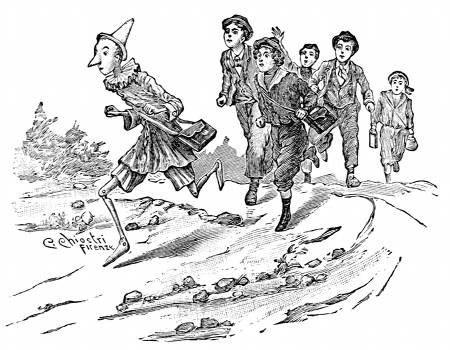 Girò gli occhi smarriti intorno alla stanza per vedere di dove mai poteva essere uscita quella vocina, e non vide nessuno! Guardò sotto il banco, e nessuno: guardò dentro un armadio che stava sempre chiuso, e nessuno; guardò nel corbello dei trucioli e della segatura, e nessuno; aprì l'uscio di bottega per dare un'occhiata anche sulla strada, e nessuno. O dunque?...