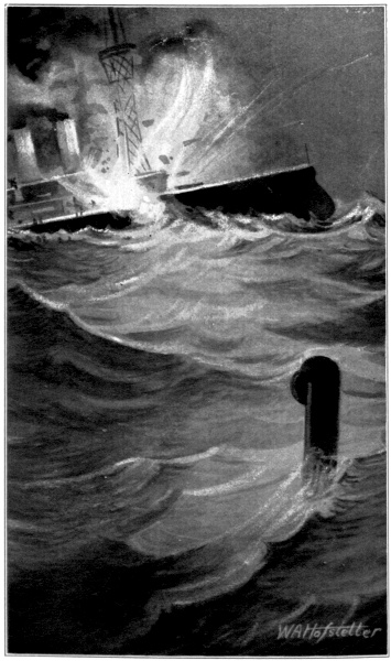 Back to the rail hurried the two young officers, intent on studying the wreck as long as it remained within vision. Their discussion fell naturally into the number of grand old ships that had gone down during the war—the "wind-jammers" of earlier days, the sailing craft that had been drafted for service in the transportation of supplies, and the still more[16] modern steam craft—all of them victims of the submarine's merciless hunger for tonnage through four years of frenzied world war.