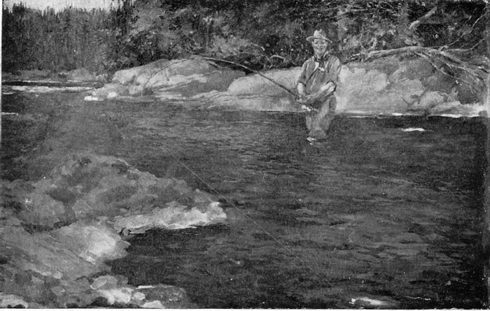 The first response to the red god's summons is almost invariably the production of a fly-book and the complete rearrangement of all its contents. The next is a resumption of practice with the little pistol. The third, and last, is pencil and paper, and lists of grub and duffel, and estimates of routes and expenses, and correspondence with men who spell queerly, bear down heavily with blunt pencils, and agree to be at Black Beaver Portage on a certain date. Now, though the February snow and sleet still shut him in, the spring has draw very near. He can feel the warmth of her breath rustling through his reviving memories.