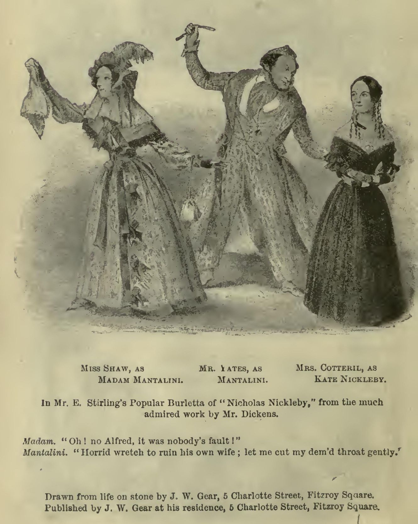 “It has afforded the Author great amusement and satisfaction, during the progress of this work, to learn, from country friends and from a variety of ludicrous statements concerning himself in provincial newspapers, that more than one Yorkshire schoolmaster lays claim to being the original of Mr. Squeers. One worthy, he has reason to believe, has actually consulted authorities learned in the law, as to his having good grounds on which to rest an action for libel; another, has meditated a journey to London, for the express purpose of committing an assault and battery on his traducer; a third, perfectly remembers being waited on, last January twelve-month, by two gentlemen, one of whom held him in conversation while the other took his likeness; and, although Mr. Squeers has but one eye, and he has two, and the published sketch does not resemble him (whoever he may be) in any other respect, still he and all his friends and neighbours know at once for whom it is meant, because—the character is so like him.