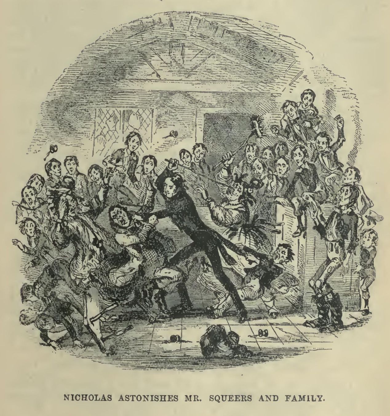 “The Author’s object in calling public attention to the system would be very imperfectly fulfilled, if he did not state now, in his own person, emphatically and earnestly, that Mr. Squeers and his school are faint and feeble pictures of an existing reality, purposely subdued and kept down lest they should be deemed impossible. That there are, upon record, trials at law in which damages have been sought as a poor recompense for lasting agonies and disfigurements inflicted upon children by the treatment of the master in these places, involving such offensive and foul details of neglect, cruelty, and disease, as no writer of fiction would have the boldness to imagine. And that, since he has been engaged upon these Adventures, he has received, from private quarters far beyond the reach of suspicion or distrust, accounts of atrocities, in the perpetration of which upon neglected or repudiated children, these schools have been the main instruments, very far exceeding any that appear in these pages.”
