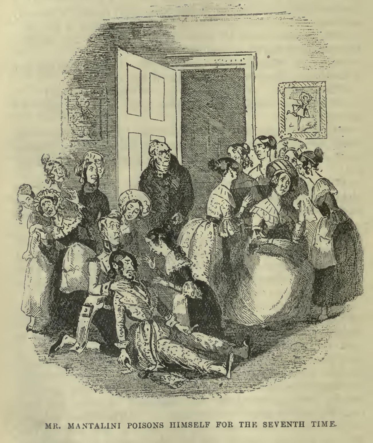 As the deceased had taken no further notice of his nephew in his lifetime, than sending to his eldest boy (who had been christened after him, on desperate speculation) a silver spoon in a morocco case, which, as he had not too much to eat with it, seemed a kind of satire upon his having been born without that useful article of plate in his mouth, Mr. Godfrey Nickleby could, at first, scarcely believe the tidings thus conveyed to him. On examination, however, they turned out to be strictly correct. The amiable old gentleman, it seemed, had intended to leave the whole to the Royal Humane Society, and had indeed executed a will to that effect; but the Institution, having been unfortunate enough, a few months before, to save the life of a poor relation to whom he paid a weekly allowance of three shillings and sixpence, he had, in a fit of very natural exasperation, revoked the bequest in a codicil, and left it all to Mr Godfrey Nickleby; with a special mention of his indignation, not only against the society for saving the poor relation’s life, but against the poor relation also, for allowing himself to be saved.