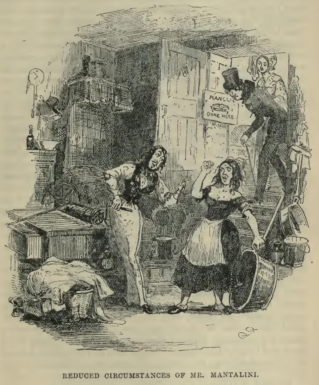 ‘Yes, poor devil!’ replied Ralph, drawing on his gloves. ‘Though Newman Noggs kept his horses and hounds once.’