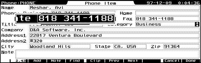 Magnify v 1.50 will magnify a portion of the screen. This can be activated by a hot key (which you may select for yourself). The portion of the screen that is magnified appears in three magnification levels. These magnification levels can be selected by simply pressing the + (plus) key to increase the magnification of the image under the "lense", otr by pressing the - (minus) to reduce the magnification. The images below show maximum magnification, second level, and no magnification. An additional level is not depicted. The images were reduced to accomodate the display, but if you click on each one, a full 640 x 200 pixel (Palmtop full screen) image will load.