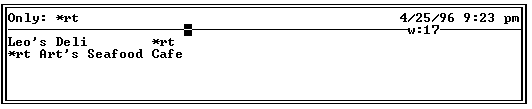 An OnlyView search on *rt displays a list of the restaurants in the file.