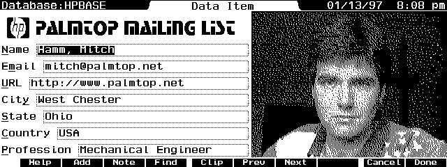 Keeping data on the HP Palmtop