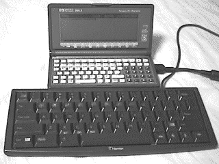 This time I've written much of this article using a nearly full-size keyboard that plugs into the palmtop's serial port. (See Photo above.)
