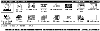 If you can get by with sixteen or fewer icons you can make App Mgr even more useful by moving the most frequently used icons to the first two rows. This means that the icons for the built-in applications will be pushed down in the list, but that's all right. You already have the blue keys at your finger tips. Having an icon that performs the same function seems redundant.