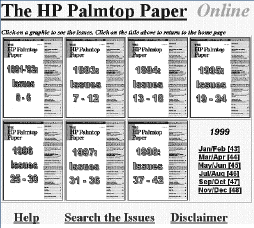 We debated whether to edit the material and delete or change information that is out of date. The consensus was to leave the issues as they originally appeared. As such, they contain the same information as printed versions of The HP Palmtop Paper and the HyperReader version on past and current CD InfoBases.