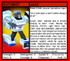 Profile: Deep in the jungles of the Pacific Northwest, renegade scientists at a secret Binaltech laboratory created C-Bot: a maniacal Scraplet bent on dominating as much of the galaxy as he can honestly expect to manage. His neural matrix sprang into operation nine months after a monopolistic PC operating system was ravished by Kremzeek. Upon awakening, C-Bot immediately turned his deadly powers against the scientists who created him. A few bandages later, the humans put him in a slightly stringer cage, where to this day he plots and strategizes against all who would oppose his rule.