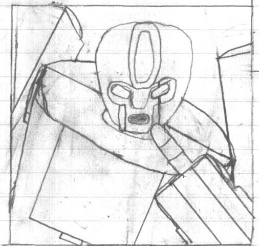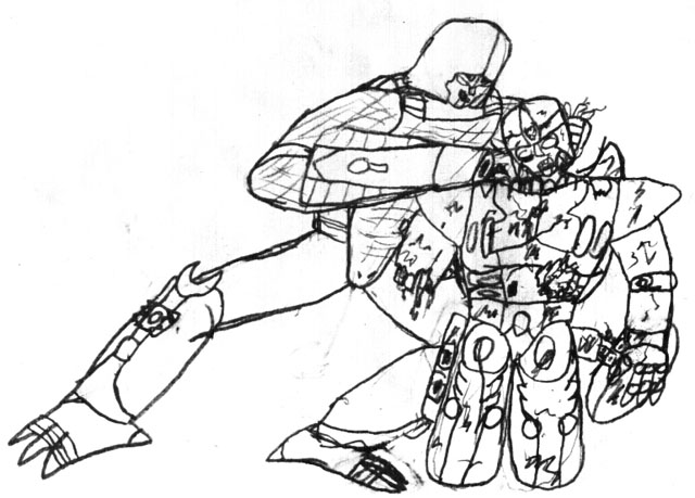 - Cyclonus - my first Transformers toy. I drew him only looking at my stickerless toy so he doesn't look like his toy or comic self (30k, 7-21-00)