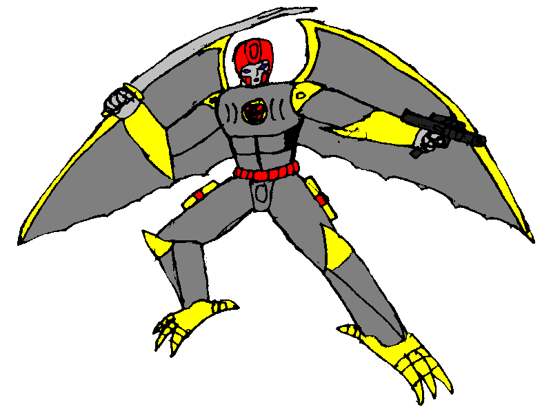 - "BW Sunstreaker" - Well, since there's a Fuzor SIlverbolt and he's so popular, I figured I'd change the Magnaboss Silverbolt's name instead. Sunstreaker seemed like an interesting character and the name fit an eagle rather well, so I chose him. I'm not entirely pleased with this rendition so I might redo it sometime in the future. (36k, 7-5-00)