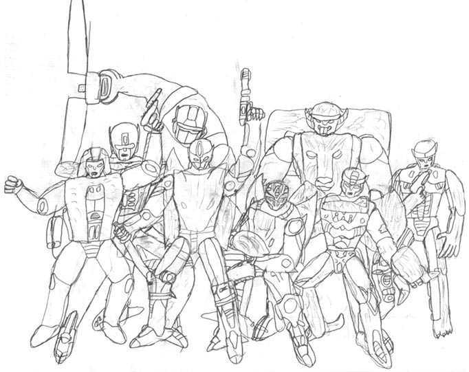 - Maximal Group - rinted out the pic and inked over the art. Also added Grimlock's spots and more fur lines on the animal bits (105k, 6-26-00)