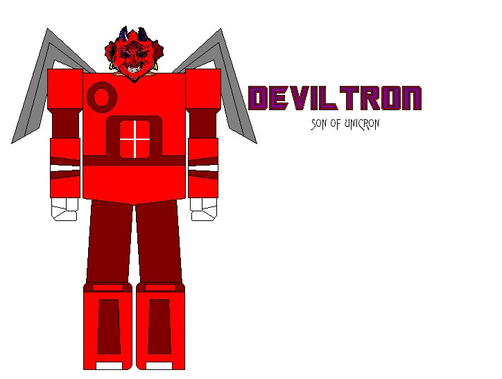 18. DEVILTRON - son of unicron he is as tall as Metroplex but whether or not he is loyal to Megatron 3 it is unknown. Will he or wont he take over the decepticons or will he create his own force of evil??? (48k, 10-6-00)