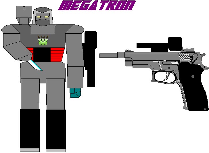 16. Megatron - here is the new g3 megatron but it is actually g1 original megatron. The third generation decepticons were leaderless and decided to hunt down galvatron even though he was dead they used a new device to bring him alive and the mind and soul of the first megatron to finally lead them to victory who knows? this time he comes complete with a white lazer sword built in to his right arm to cut up any opposing force! (49k, 11-9-00)