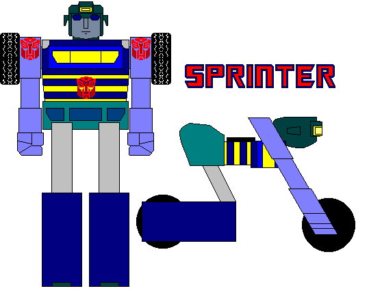 11. "Sprinter" - the younger brother to my character dienamo but along with dienamo gets killed and reformatted in to an unknown robot! (11k, 3-4-01)