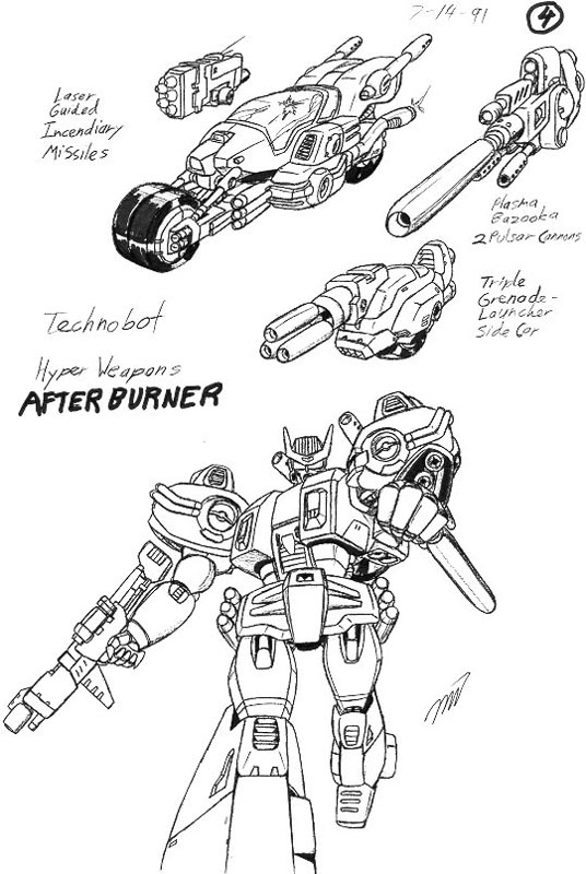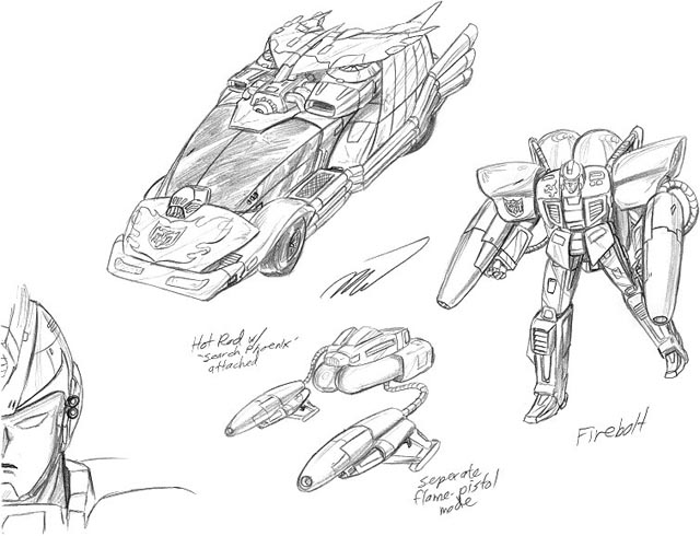 31. Advanced Technobots: Inspired by the beefed up look of the G2 comic, I dreamed up this new Technobot team. B/W inked.