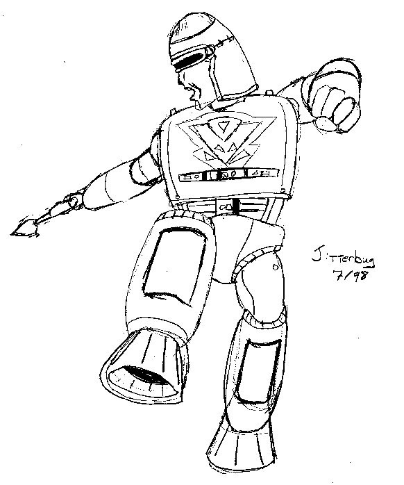 6. Jitterbug - (BW pencil sketch) This spineless Decepticon spy spends most of his time on the run. A "Decepticons, Attack!" character. (79k, 8-1-00)